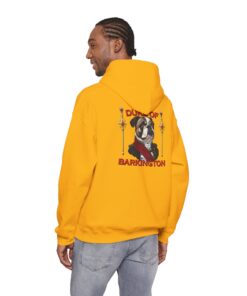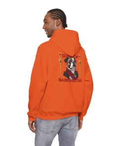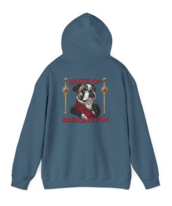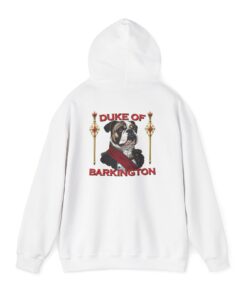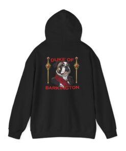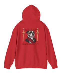 A cozy, statement hoodie for anyone who knows their bulldog isn’t just a pet, he’s the landlord, life coach, and duke of the living room. Soft, medium-weight fleece wraps you in warmth while a small Duke of Barkington portrait rests over your heart and a larger illustrated crest takes over the back like an official royal banner. Rich, vintage-inspired colors and fancy little details make it feel like a tongue-in-cheek family coat of arms — perfect for dog lovers who fully accept they’re the ones fetching snacks on command. Pull it on for quiet coffee mornings, slow strolls with your pup, or low-key hangouts where your outfit says you care about comfort, character, and a healthy dose of bulldog-powered drama.